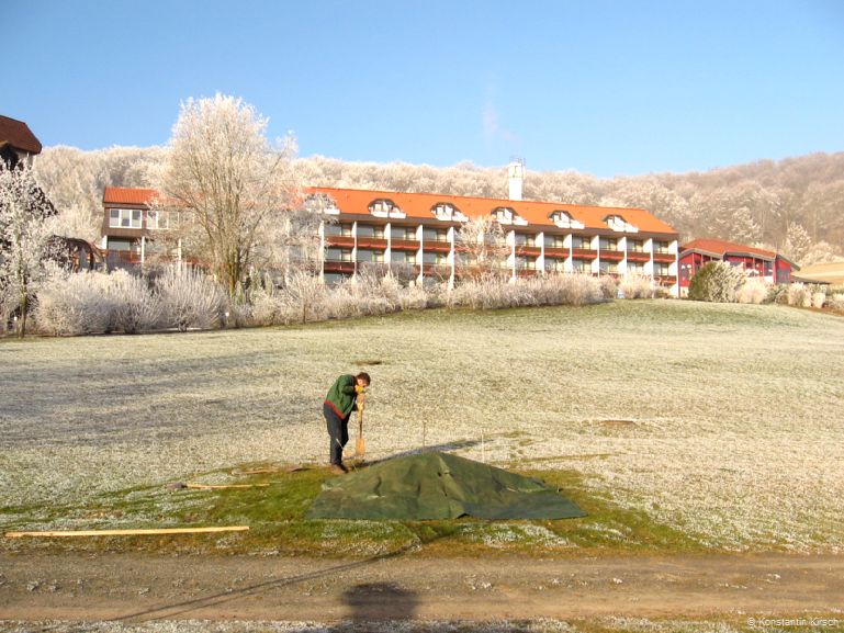 Im weitläufiger Park sollte eine besondere Attraktion geschaffen werden, die für die Gäste eine bleibende Erinnerung wird. Die Position der Skulptur ist so ausgewählt, dass Erinnerungsfotos an dem lebenden Tor das Hotel im Hintergrund zeigt.