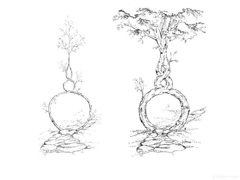 Lebende Skulpturen, lebende Räume, lebende Lösungen, setzen Zeichen für eine lebensfreundliche Zukunft. Dieses Kunstwerk wird Blätter, Blüten, Früchte tragen und dabei noch Sauerstoff produzieren, Wasser verdunsten (dabei Wolken produzieren), Insekten und Vögeln Lebensraum bieten, Humus erschaffen, und hoffentlich viele tausende Menschen mit lebendigen Gedanken inspirieren.