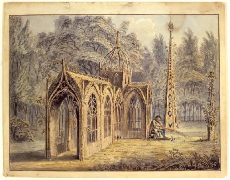 Eine mehr als 200 Jahre alte Darstellung gibt es von der Pflanzung einer Kirche. Es handelt sich um eine colorierte Zeichnung der Willow Cathedral (Weidenkathedrale) von Alexander Carse (1797-1820). Das Bauwerk soll ca. 1794 in England entstanden sein: