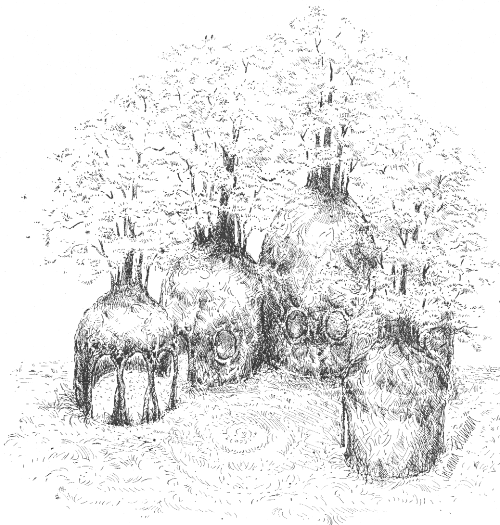 Das größte Haus des Parks wurde im Frühling 1993 gepflanzt. Gesetzt wurden 1350 Eschen (Fraxinus excelsior). Fünf Räume zu je 5 Meter Durchmesser formen einen Halbkreis um einen Innenhof. Mittlerweile sind viele Berührungspunkte der Bäume zu kräftigen Verwachsungen geworden.