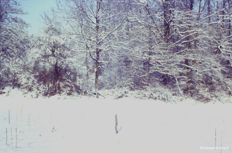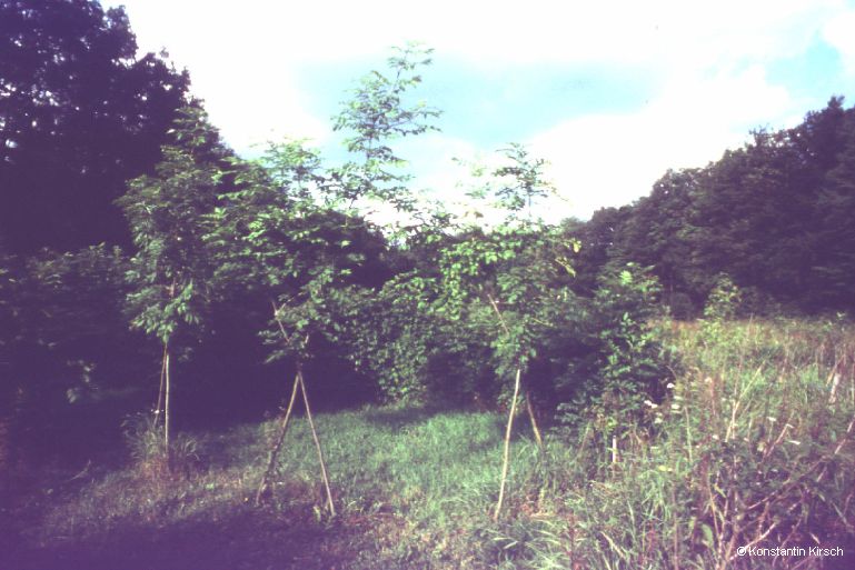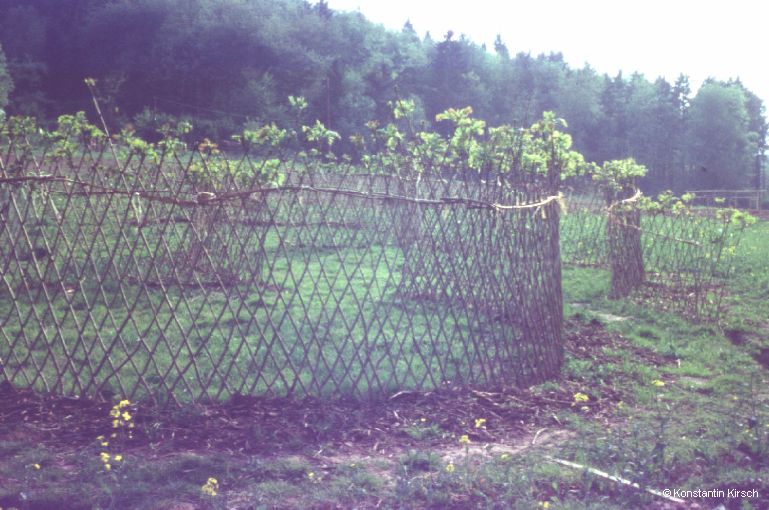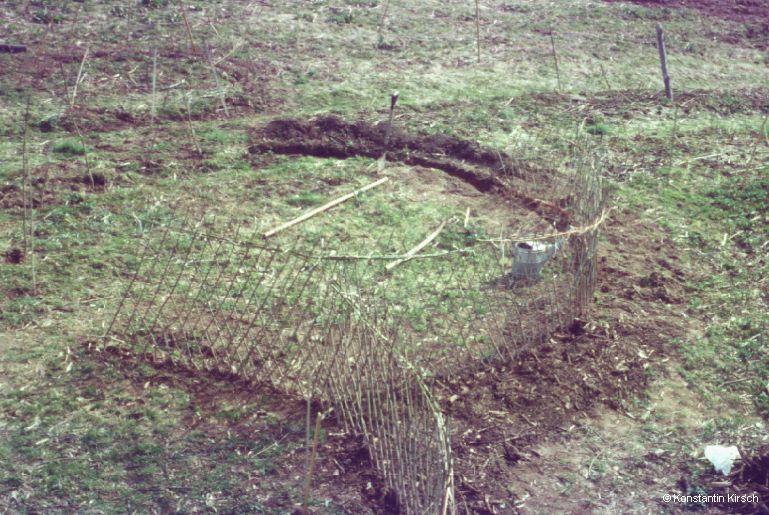Fotos von der ersten Planung im Schnee, der Pflanzung im Frühling 1993 und dem ersten Blattaustrieb: