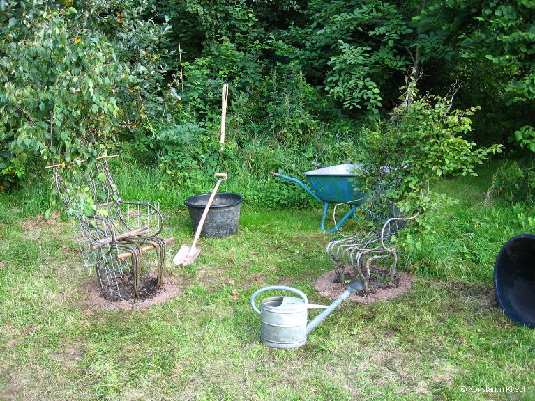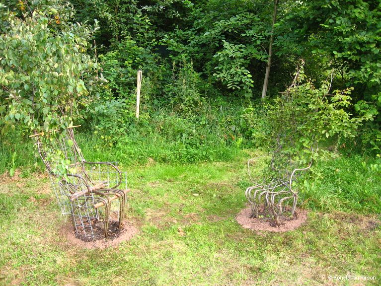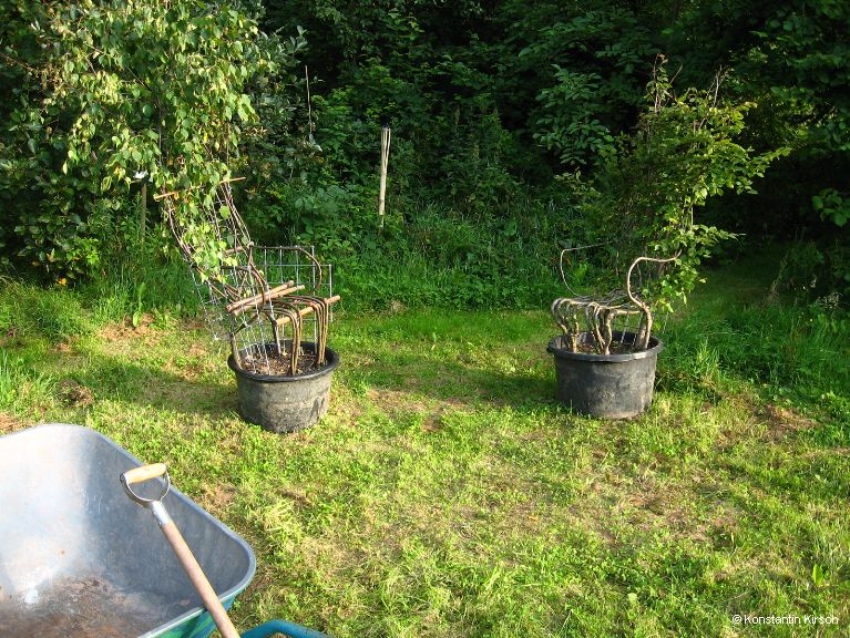 Im Juli 2009 hat uns Hermann Block aus dem Allgäu besucht und unserem Projekt zwei seiner Stühle geschenkt. Als Dankeschön mache ich natürlich gerne Werbung für seine Webseite, sein Buch und seine Arbeit: www.lebendlaube.de Die Stühle bestehen aus: Hainbuche (Carpinus betulus) und Bronzebirke (Betula maximowicziana)